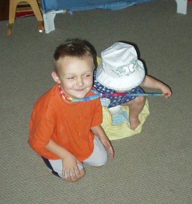 Abigail found a new toy to drag around!!