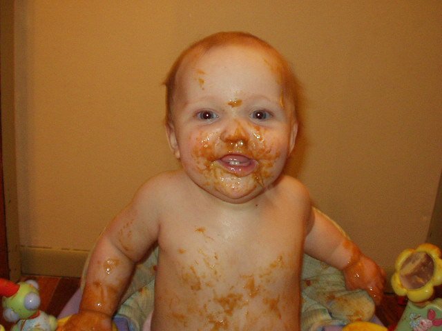 It is sooooooooooo hard to get 'veggies' off of a baby in the bath!!