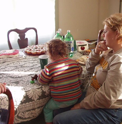 Abigail is sneaking a cupcake with Mamaw!!